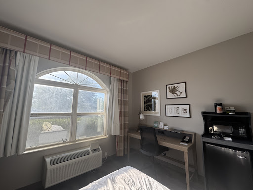 Read moreWe are locals and went to this hotel because our home had to be fumigated. We decided to make it a staycation and brought the dogs (2) and all of our gear! First of all we found the best price using an app and when we made the reservation we were advised that we wouldn't get charged anything until AFTER our stay. I am disabled and we needed a downstairs room unless there was an elevator. We were told that the suite designated for disabled guests was already booked but they had a suite next to it that was identical, the ONLY difference was that there was no door bell that lit up for the hearing impaired. That was fine for us. When we pulled up with two dogs in tow the place was clean and orderly from the front lot and top to bottom. Next, the front desk clerk asked if we needed a hand and was happy to see our dogs, even asking their names and such. There was a luggage cart available at the front door, right outside the lobby and the clerk offered to help my partner with our things. The breakfast was free and always had fresh fruit, things were refrigerated and the kitchen staff was friendly and helpful. The pool was clean and sparkling, but not suited for me as I need a wide set of stairs for entry and exit interview the pool but that was fine with me, our son would have loved it though. When we walked the dogs around the grounds there was no trash or litter anywhere,the place was immaculate! The only problem was that there weren't any outdoor trash cans to put the bags for dog poo (we always clean up after our dogs) so we would just leave the bags beside the tree out in the yard. Each time we went back out, the bags were gone! The staff here is amazing! The accommodations we're terrific and the food was great. This year's staycation will be at the Country Inn as well. Also, we needed to do laundry at 2am and when I went to the laundry room it, too, was immaculate, not even any lint in the dryers! I lost a quarter in the vending machine and the front desk clerk just gave me the laundry detergent and fabric softener as well, on the house. This is our #1 recommended hotel...