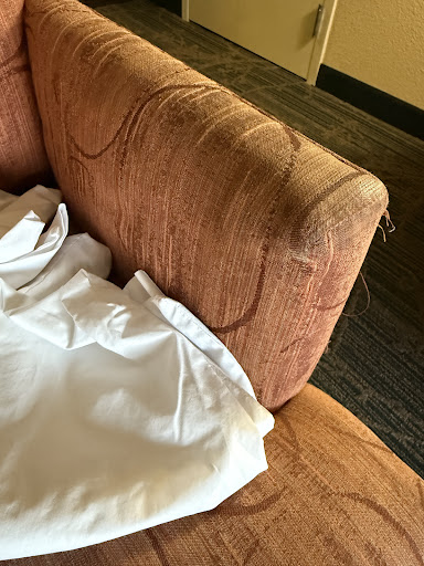 All fine until I got to the room and it was disgusting. Iāve added photos. The furniture was horrendous. The desk chair was sticky. The couch had stains on the cushions and arm rests (I type this while sitting on said couch that I covered with two extra sheets.) There was a layer of dust on the carpet in the corners. The wooden desk and dressers were scratched, chipped, stained, and sticky. The fridge was freezing up and water dripped from it every time it was opened. The toilet flapper would get stuck and had to be manually jiggled and fixed every time it was flushed. The TVās were very outdated and they (along with the windows) had finger prints all over them.