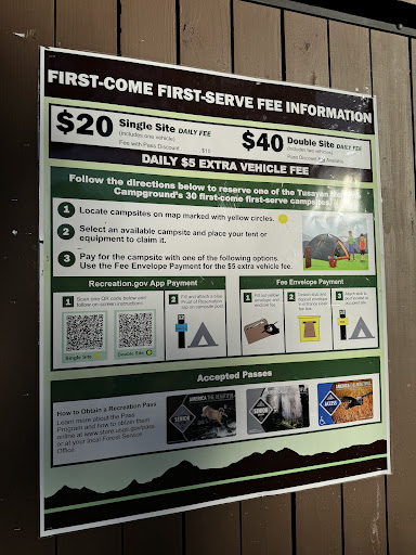 Read moreThe Tusayan-Montane Campground is just South of Tusayan and the South Rim of the Grand Canyon. Reservations are via recreation.gov and there are first come first serve sights. We camped near the end of June and the campground had many open sites in the FCFS section. Facilities are limited, drinking water, trash dumpsters and pit toilets. However, the campground itself is clean and the sites are very spaced out. Each site has a picnic table and fire ring. We stayed in a pull through site, large enough for our truck and trailer with room to spare. The sizes of the sites are accurate on recreation.gov. The camp hosts were really friendly and came through a few times a day to check the toilets and make sure things were going smoothly.