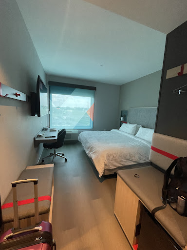 Read moreThe hotel was modern and clean. The staff were great too. I like that there is no carpet in the rooms that way there is no musty odor like other hotels. I like that there is Dove body wash, Dove shampoo and conditioner are provided on the wall in pumps for convenience. I was impressed by the Dove body lotion AND hand soap provided in pumps as well. I go to much more expensive hotels that never have pump hand wash! I dislike using bar soap to wash my hands but have no alternative unless I go to the store and buy some. You have to be mindful of is the room is modern but the king size room a bit smaller than usual. There isn’t an actual closet, no safe, or sofa bed. But if you’re going for a quick stay like I did, I wasn’t worried about it. Also, Breakfast is not a continental breakfast at all like you would get at another hotel Inn. It is literally grab and go. Don’t expect to make a waffle, get some eggs and bacon, etc. It is more like Individually wrapped Jimmy Dean sausage biscuits warmed up, Small individual cereal, boxes, yogurt, granola bars, small banana nut muffins, apples, and bananas. They did have omelettes that were made and individually wrapped, but my daughter said they were not good. I really hope that they would work on increasing the options and making it better for guests