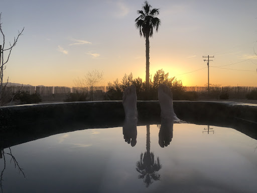 We only had one precious night there, but did a sunset soak and a sunrise soak. The water felt incredible! My skin and hair were so, so soft, no need for oil after soaking, even in the dry desert climate. We only used two of the four private tubs available at the house, the outdoor granite tub for soaking, and the white bathtub as a cold plunge. We left water in the white tub overnight and came out at 7 AM for a morning soak to discover it at like 45 degrees! It was ideal for detoxification! When you go from the hot to the cold and back to the hot, your body tingles from head to toe. Soak up that feeling for as long as you can. It's healing.