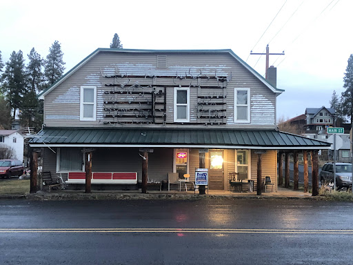 I had ridden my motorcle for over an hour in rain southbound on Hwy 395 late at night. I was cold, wet, the wind was blowing, I had no idea where I was, and feeling miserable in the 51 degree temperature. I had trouble seeing the road because of the water on my goggles. Lightning was flashing ahead of me, and behind of me. There was nowhere to go. I didn't want to stop and risk being struck by a lightning bolt. Finally, a sign mentioning "Lodging ahead" appeared. The next sign said, "Lodging one mile in Ukiah." An arrow pointed to the left. I thought I had arrived in Ukiah, California, and was prepared to pay whatever the hotel wanted just get out of the weather conditions. The town is very small, Obviously not Ukiah, California. It was about 10:30 p.m. but the lights were on in what appeared to be a closed business. I thought, "Oh God, I hope I can get a room." I parked the motorcycle out of the rain, and went inside to a dry and warm front room. It was heaven. ||||The sign said, "Push the button for service." I did, and a friendly (and pretty) young woman appeared. She informed me that the room would cost $35 for the night. Imagine that...only $35. The Antlers Inn is an old Hunting Lodge appearing to be from the 1940's. It's rustic, and homely, like going back in time. If writer Steven King appeared, it wouldn't have surprised me. The bed was old, but very comfortable. At the foot of my bed was a two bunk bed which I used to spread out my wet gear to dry out. This isn't the Comfort Inn or the Ritz Carlton, but I'd stay here again. It's a nice comfortable clean place, and with a lot of history. Of 14 rooms, only three were in use. The sleeping rooms are on the second floor. Two bathrooms are at the end of the hall. Each bathroom has a shower, a commode, a sink with a mirror. Reminds me of a European hotel. So...if it's late at night, and you're anyway near Ukiah, Oregon, take the one mile detour and stay at the Antlers Inn. It's an...