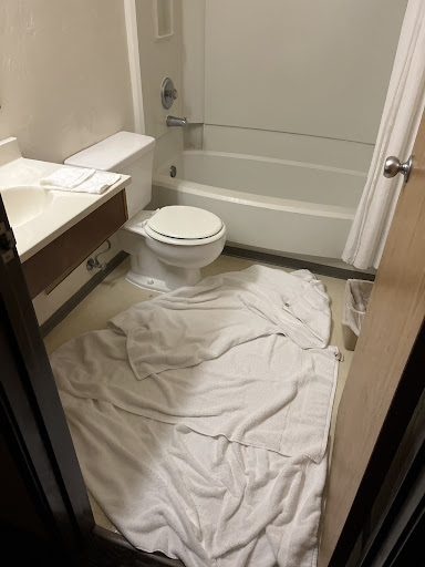 Main light in bathroom did not work, and the front desk said they wouldn't be able to change the bulb until the next day. So the only working light in the bathroom was the heat lamp, which was on a 15-minutes-max timer, so rather less than ideal. There were shoddy patch jobs on the walls and bathtub. Shower fixture was janky and had low pressure, with about half the water flow just dribbling out the bottom of the showerhead, and a good deal of it spraying out of the faucet. Tub drain cover/plug was broken. For a "100% non-smoking facility", there sure were a lot of cigarette burns all over the bathroom.