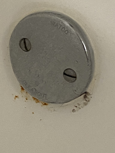 *The rooms! They are spacious and very nice, but also neglected. Thick dust all over. We wiped down shelves and you can see the dust thickness is the corner. The bathroom could have been nice if the dirty bathtub from the 1970âs was cleaned up. The floor behind the toilet had black mold on it, and the floor in front of the toilet was bubbled.