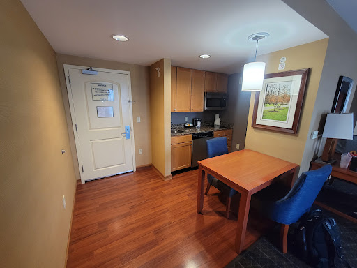 Read moreThis was a great location, close to a lot of stores and quick food spots. The hotel itself was nice! Just like every other business during this time, the hotel was short staffed and it showed. But again, it was expected and could have been a lot worse. The staff they did have was doing great. It had a half basketball court, but you have to bring your own ball. 2 outfit grills for use, for come first serve. The rooms themselves were spacious, well decorated and clean. Linens were clean and fresh, as were towels. Loved the kitchenette and full fridge in the room. Weis grocery was only 2 miles away and it was nice to cook in the room especially since the complementary breakfast was lacking. Only cereals, yogurts, bagels and pre-made jimmy dean breakfast sandwiches which were either still frozen or burnt. Some pots pans and dinnerware were in the room for meals along with a dishwasher which was awesome. Family members also were at the same hotel and in 3 other rooms which were just as nice. Only con was the showers, which made me feel like the breakfast sandwiches, either burnt or frozen with the water temperature. Couldnt say cleanliness was the same for the main hotel. Main lobby wasn't mopped the entire time we were there. There was a spot on the ground that I jokingly said looked like blood when we checked in Friday, was still there when we checked out Sunday. The pool was cloudy and way over chlorinated. Again, when we went swimming Friday, a family left a hotel towel on one of the chairs. When we went swimming before check out Sunday, same towel, same chair. Hallway carpets were very stained. I'm pretty sure upon check in we were told room service wasn't available and we thought they meant food but then realized they meant cleaning. All rooms left their trash and cans in the halls to be picked up in the mornings. Wasn't visually pleasing, again I'm sure all of this is due to the short staffing but still leaves an impression. Regardless, if we were ever in need of a hotel in that area again, we wouldn't hesitate...