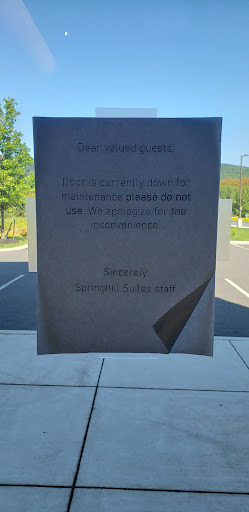 It seems recently that Marriott has changed their policy for guests traveling with dogs. Perhaps it was the result of irresponsible dog owners who spoiled it for the rest of us. Two years ago we lost our 14 yo dog to cancer, we traveled frequently with her and we always stayed at a Marriott where dogs were allowed. As a responsible dog owner we never left her alone in the room, we brought in a dog bed for her to sleep on and we always cleaned up after her whether it was a food or water spill inside or her daily constitutional outside. My husband is a lifetime titanium member and as such we always received lifetime titanium member status treatment even when traveling with our dog. We were always given a quiet and clean room on a high floor close to the stairs for easy access for walks and bathroom breaks outside. Fast forward about 2 years after our loss we decided to get another puppy of the same non-shedding breed, she is now 16 months old. We've raised her the exact same way and are still responsible dog owners. As lifetime titanium members we expected the exact same treatment, however, at this Springhill Suites by Marriott we were met by a woman at the front desk who was not friendly nor personable. She gave us a room on the first floor just beyond the lobby and right by the breakfast area.The room was definitely noisier than what we had grown accustomed to by Marriott as lifetime titanium members. It was downright shabby and not cleaned well, the sliding glass doors over the desk had so much sticky filth in the track where the doors slide open and closed that they were stuck in place! The sofa had a back cushion that was torn and frayed all along the top side. The bathroom floor was sticky! Ew! And the toilet set was wet! So gross. The lighting in the room was inadequate and we couldn't open the window blinds because we were right on the parking lot by the hotel lobby entrance. We stayed one night and was charge a $75 pet fee. For what?? They obviously don't thoroughly clean the rooms after a dog stay. Such a terrible experience. Wish I could leave no stars! We won't be staying there again. So...