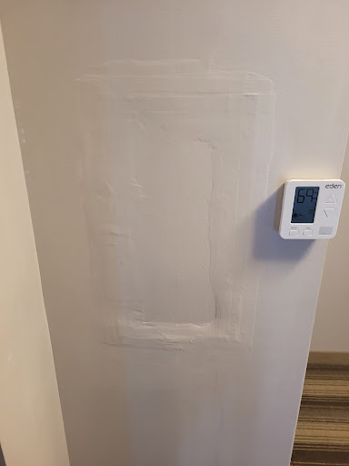 Around 6:30, I noticed that the room was not any warmer than it was when I first got into the room. I turned up the thermoset again. Only this time, I put my hand in front of the fan and all I felt was cool air. I confirmed that I had selected “HEAT”. I had. I concluded that the heater was not working. I went down to the front desk and explained the issue and requested to be moved to another room. He gave me the keys to room 213. The heat and the remote both worked.