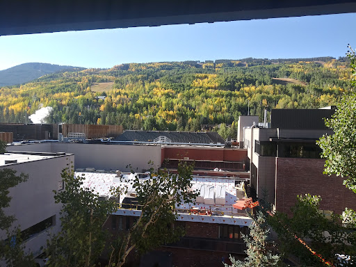 Shuttle to Vail: Walk out the back, down the outside stairs to the walkway… where the walkway splits take a LEFT. Go over the bridge and then turn right to get to either of the bus stops depending where you want to go. Bus stops have an easy to read map and time of when the bus will show.