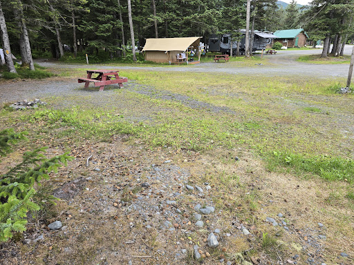 We were a group of campers mixed with tents, RV’s and Trailers. Lori, the manager, set us up in a section together so we were not scattered about the Kamp. We felt so welcome with signs and flags on our sites to greet us. The grounds were clean and very well maintained. Each site had electric and water. John, came around and emptied the holding tanks for us so we didn’t have to move the whole trailer. He was kind and available for any of our needs. Nena, at the front desk of the little gift shop, was delightful to chat with and very helpful with my questions about how the place worked. There were some lovely Alaskan and Valdez gifts and a nicely stocked parts and necessities section. The grounds are set up around a large open field that has a playground, gathering area and a fenced in doggie play yard. It was very convenient for the kids to be playing together while we held our group discussions. I wish I would have come here when my kids were small, it was so nice to see all the kids playing in the centralized area in eyesight but not underfoot. The dog play yard was nice for some off leash time. The bathrooms and showers were very clean and set up more like a home bathroom would be. I didn’t have to wait in line once to get into a shower. The water never went cold. It had good pressure. The rooms were warm and not a shock to the backside when sitting down. We normally stay in more remote camp areas where you can’t see your neighbor. This was a really great first group camping experience for my family. We will come back with the...