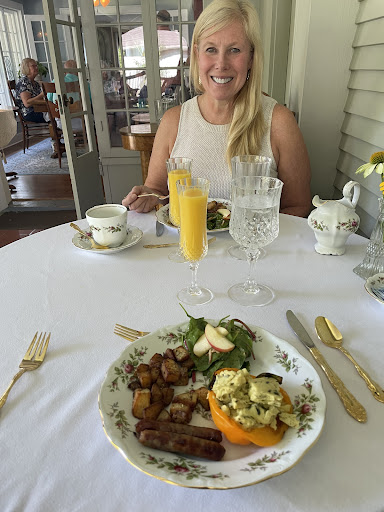 I feel so lucky to have found the Valparaiso in bed-and-breakfast. It made the perfect long weekend for my adult daughter’s birthday. She requested to go to the Indiana dunes for her birthday, so I wanted to find something a little more unique than a regular hotel. The bed was the most comfortable experience ever at any lodging I’ve experienced. The food at breakfast was out of this world, presented beautifully and tasted amazing. Jim, the innkeeper is very, very kind and thorough. The care in which he takes of his Inn, the food preparation, presentation and service, and helpfulness was beyond compare. Upon our arrival, he briefed us on all the great spots nearby. And nearby is amazing, within walking distance, in fact. The downtown is just charming. I would vote it my favorite ever (in my 54 years). There is a nice mix of shops, restaurants and activities. The Inn itself has a very lovely appearance, we had a view of charming outdoor lights and yard area. The bathroom and room were so lovely , with a calming choice of wall color and a very classy bathroom decor ( walls, floor, shower). everything was very clean and tidy, and there were fresh linens, and towels every day. Most all of the furniture were lovely antiques. During our visit, we went to the Albanese candy factory, Indiana dunes national park, A nearby family fun Center with putt putt, golf, and other fun activities, as well as many of the shops and restaurants in the nearby downtown. For my daughter’s birthday, we ate on the rooftop of a restaurant called Stacks and there was so much food for the price, it was crazy. In my pictures, you will see a couple of Jim’s creations (wish I’d taken pictures every day) at the breakfasts, and the salad...