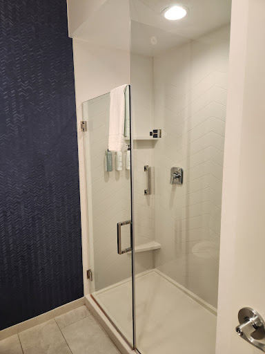 I had a king room which seemed geared towards business travelers or couples looking for a 1-2 night stay. Modern, high ceilings, large TV and bathroom.||||Pros:||- Hotel is nearly new (opened late 2021)||- Very clean room||- Bathroom is large, spacious shower and sink that is in the bathroom||- Microwave, refrigerator and coffee nook||- Plenty of places to hang coats, towels, etc.||- Large TV, easy to connect a streaming media player to||- Quiet and functional HVAC||- Friendly front desk staff||- Close to airport, I-75, dining options nearby||||Cons:||- Shower head is high and may be difficult to adjust for shorter people||- Water pressure could be better||- Room lacks a sitting or eating area||- Not the most sound-proof rooms (there were people coming in late in the halls, but to be expected).||- Could use more outlets closer to the bed||||The hotel is in a newly-developed area, looks to be an extension of the "York Commons" shop and dining area south of the airport. As it is, it's right on the edge of housing and there's empty lots around, but the neighborhood feels safe (at least compared to the rest of Dayton).||||I still give this hotel a 5-star rating despite the cons (nit picks really) because it's perfect for what it is - a new, clean, well-appointed place to rest close to the airport and...