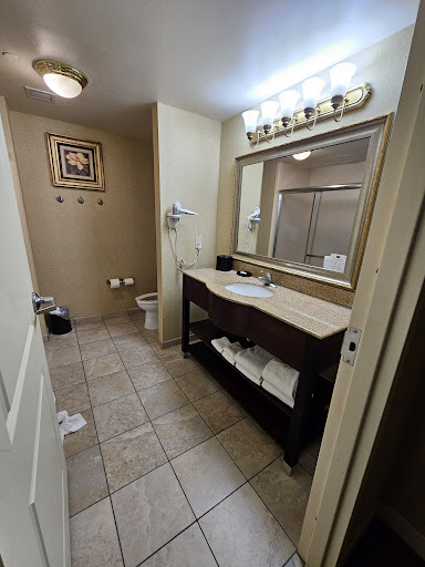 Read moreWere planning on driving further but flashflooding and bad road conditions forced us off earlier. We booked a 2 queen room here online ($200 with tax). When we arrived they didn't have a 2 queen and put us in a king with a rollaway. Annoyed to say the least for a family of 4 and no offer to credit back some of the points we had used for this stay due to not having the room we booked. The rollaway was horrendous and my husband couldn't sleep on it so we ended up all crammed in the king bed. Mattress wasn't the most comfortable and felt like it was on its last leg. Lobby area looked nice, but our room was horrible. The minute we opened the door it smelled strongly of mildew and mold. We couldn't change rooms as they were sold out. Our immunocompromised cancer kid coughed all night due to the mildew. We ended up having to have him wear a mask to help filter some and get him more comfortable. The furniture had peeling wood pieces and were scratched and knocked alot. The doors had so much dirt and filth on them. I used our disinfectant wipes to clean some of it off but they needed a very good scrubbing. Bedding was clean although the pillows were literally the size of small couch pillows (half of a standard pillow size). The bathroom looked okay at first but then I looked at the shower. It had black mold growing in it. It honestly was so far gone cleaning wise it needs to probably be replaced. I wouldn't let my family shower there. There was oddly a coffee maker in the bathroom next to the shower as well. The reviews I had read had this hotel higher rated for the area but our room definitely didn't reflect that. It was quiet and right across from the Nps visitor center for the vicksburg battlefield. Breakfast was okay, but people hoarded the sausage so we had to split the one sausage patty left between us. Bananas were all gone. Potatoes were cold. Staff wasn't very friendly. We travel alot and this hotel ranks of with one of the worst stays we have...