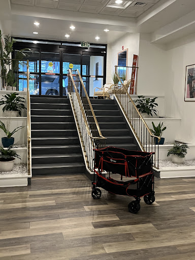 I checked in late last night after a long day of traveling, just ready to catch some sleep before hitting the road again the next morning. After checking in, I used the only luggage cart available which also seemed to have a flat/broken tire. The entry into the hotel has stairs right as you enter, so you have to wheel your things down a long ramp into the side of the hotel.