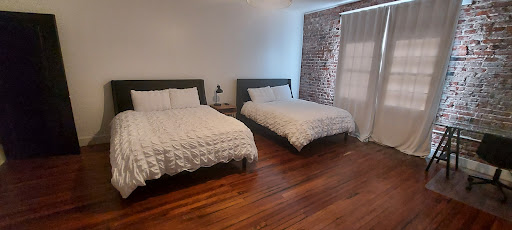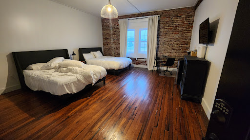 Lovely space! This property is run like an AirBNB with electronic, self-check-in. My son and I stayed in one of the rooms with two double beds. The rooms are located upstairs in what I would call a historic building. The brick on the wall, the hardwood floor, and the high ceiling gave the room a certain charm. The beds were comfortable. Our experience was positive, and we'd definitely choose to stay again next time we visit the area. There are some things that you'll need to know before staying: (1) There are some really steep stairs. (2) There IS a refrigerator and microwave in the entry lobby that guests can use. (3) The wood floors squeak REALLY loud in the middle of the night, so if you're trying to get to the bathroom without waking up someone else in your room...good luck! (4) There weren't an abundance of outlets near the beds, so if you need both your phone charger plugged in and a CPAP like I did, you may want to bring an extra...