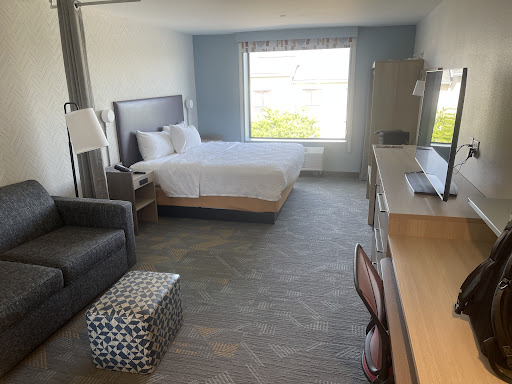 We stayed in a king studio and were pleasantly surprised by how spacious the room was. The room was well thought out and comfortable. It's nice to have a regular sized fridge and freezer when traveling. The room and the lobby were both very clean. |I was happy to find multiple outlets as well as usb charging ports on both sides of the bed. The location is great, just off the interstate and yet the hotel was pretty quiet. I did hear a little highway noise at times, but very minimal. We walked over to Olive Garden for dinner and there are other options in walkable distance. |Breakfast in the morning was pretty solid for a free hotel breakfast. I was quite pleased that they offered both chicken sausage patties as well as pork sausage patties. There was a nice variety of options.|This was my first say at a Home2 Suites and I liked it quite a bit. It's nice to have a little extra room in the room to sit on the couch and relax. Just outside the front door there were firepit areas and other outdoor seating. We didn't use any of that on this trip, but it looked great. |This will be our hotel of choice when staying...