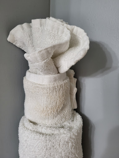 Also included a picture of the stained towels that were in the room. So gross. I hope it's coffee.