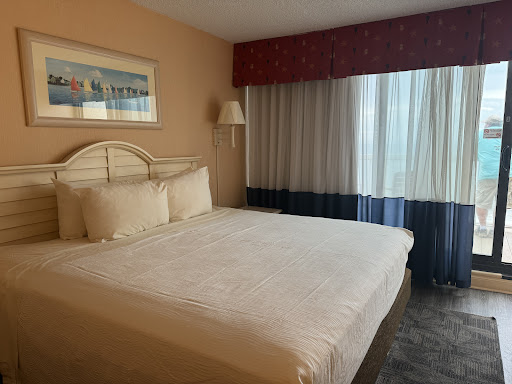 Ā Ā Ā Read moreThe room was disgusting and the patio was covered with hundreds of biting gnats. There were biting gnats inside the room, and I was told there was nothing that I could do about it and just to keep the patio closed. It was clear there wouldn't be any help from the staff from the beginning. There was hair on top of one bed, and underneath the cover. There was hair on the bathtub, and a clump of hair and dirt in the bathroom floor. The toilet seat was old and damaged. Dirt and debris were on the floor, under the sink, and around the edge of the mattress. The fridge wouldn't get cold, and smelled horrible, so I had to turn it off and couldn't use it the entire trip. The third night we were there, ROACHES were running around in the floor! The staff was not helpful, not friendly, and didn't smile or say hello when they looked at you in the hallways. I was told housekeeping would not be coming into the rooms for our stay. So, I had to clean the entire room and sanitize it myself. It looked MUCH better when we left than when we arrived! After being sent an email stating that only one family per elevator ride was allowed - staff even jumped into the elevator with us. Signs were posted for "quiet time" from 10pm to 8am, but we had a group of people stand outside our room and talk & laugh very loudly from 10:15 until 11:20pm - and one person was a male worker at the hotel. The fire alarm went off FIVE times in two days during our stay. We had to race down the stairs to make sure we weren't going to be caught in a fire. Unfortunately, there was also a man playing BONGO DRUMS on the boardwalk outside of our room several nights. He was allowed to play until 12am! There were obvious stains and signs of leaks in the hotel ceiling and the tiles had not been replaced. The hotel is old, dank, and the patio looked molded. The photos on the website are very misleading and most of the staff are not welcoming, smiling, or happy at any time. We passed a room that was being "cleaned" with the door open and the staff person was sneezing and coughing loudly - but still allowed to clean rooms. The online reviews & hotel website photos are...