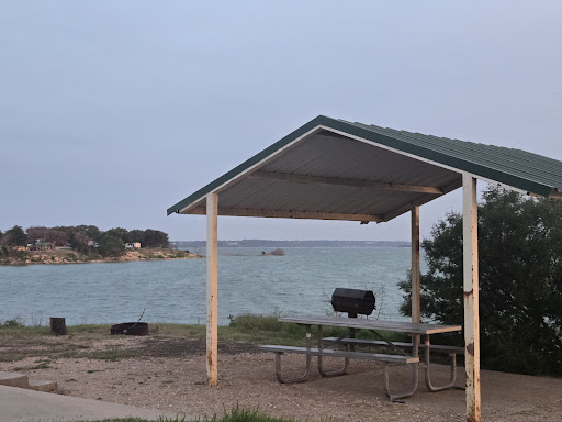 The campground is a hidden gem! We had a site on the water (63) which was between two rocky beaches up on a ledge. Beautiful sunset. We stayed during a heavy storm and our site drained well - virtually no mud. Right under the flight path of the Waco Airport, we enjoyed watching the occasional airplane. Not too noisy, in fact quiet and peaceful overnight. Very large, well spaced sites. Many shelters are damaged due to storms, so no shade unless you bring your own.