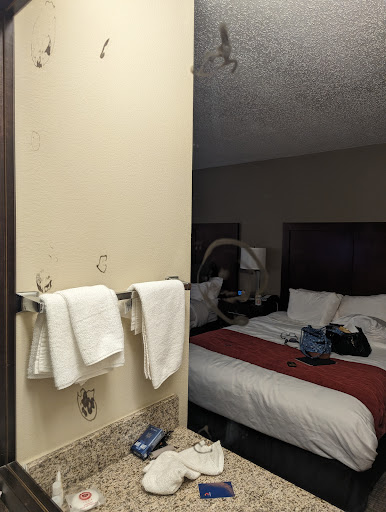 Read moreMy advise to travelers ,Keep traveling to East Davenport, Hilton Garden Inn for clean rooms! Heading home from Arizona trip and stop at the comfort inn walcott. I wish I would have follow my gut instinct of the location and outside view of This hotel. Both were dingy and dirty. Inside i noticed a weird oder ( like fuel oil) however the clerk assured me his rooms were clean. We have stayed in several comfort inn hotels on our trip and all of them were clean and up to standards so we paid and went to our room. The carpet on the 2nd floor hallway was dirty and stained, our room carpet looked the same and the room had the same downstairs smell. The hotel is nasty and old and everything was worn, including the old soft mattress on the bed. The night stand had water stains. After further investigation of the reviews I was mortified to find 14 complaining of bed bugs. The original three or Four were positive, I have learned my lesson to look at “ more reviews” section. My husband and I looked online to find a hotel elsewhere and then heading back downstairs. The desk clerk did not want to refund us , stating we had been in the room 45 min. He did call management and they stated they would refund our money. The room is still pending on our account.the hotel rate was 117 per night, for a $45 quality room. we found a Hilton Garden Inn in Bettendorf for...
