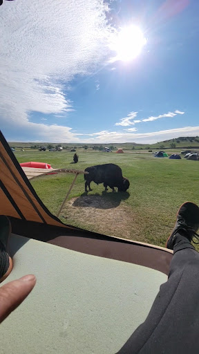 Ok, first and foremost, letās talk of amenities: there is no water, electricity or no showers. There are pit toilets, but I think only two, maybe four of them. | The campground is free, which means there is very limited if any monitoring by national park staff, of which it can get pretty rowdy at night. At least it was when I was there. As a solo traveler who was there for a peaceful and quiet night to lay my head in my tent, it got pretty irritating. I almost went over and had a nice little āchatā with a certain group, but they calmed down in the nick of time. I recommend staying in the overflow area, itās more peaceful, with buttes right behind you. The main camping area seems more on top of one another. You just have to expect some people looking for a spot later at night in the overflow. Oh, and there are shaded areas at the sites under wooden covers to eat. | Nature: PHENOMENAL!!!! The night sky here is among the best Iāve ever seen. Only seen better in the Atherton Tablelands near Cairns, Queensland Australia. The sky was very clear when at Sage Creek and it was incredibly quiet when I woke at about 4:00am to view the stars. It was pretty cool to hear the coyotes howling and barking in the distance. I started hiking before sunrise on the hills/buttes and was on the lookout for bison and saw two, one from a distance and one fairly close. About an hour later I was going toward the campground and the bison that was closer to me was right near the trail. I didnāt want to walk over the sagebrush and step anywhere near a rattlesnake, so timidly walked by big boy bison and he clearly didnāt want me there. When they start staring at you, youāre too close. Thatās the case with any animal and this one was staring and grunting in a manner they donāt unless perturbed. He didnāt charge and I didnāt have to run for my life, so all ended well. Back at the campground, there are a good number of the cute little prarie dogs, especially when you first enter the campground thereās a fairly good number of them and also in the overflow camping area thereās a good size cotery (what prarie dogs families are called). Please watch your step because their little holes could cause you to sprain an ankle or worse, possibly ending your trip. And for lands sake, PLEASE PLEASE donāt try to feed them human food!!! Itās really bad for them. (Not like a lot of human food is good for humans, eh?). They sure are cute though. One thing I think is worthy of mentioning is there are no mountain goats in the Badlands, there are only Bighorn Sheep. Youāre seeing the ewes with smaller horns. Goats are in the Black Hills. It might seem quite strange to some for me to mention that, but it was surprising how many people said they saw goats. Nope, theyāre in higher terrain.š¬š. Just an FYI. You have the possibility of seeing Bighorn Sheep not far from the campground though. One of the coolest things that happened was after leaving the campground en route to hiking a couple of shorter hikes in the Badlands, there was a herd of about 100 bison on/near the gravel road. It was awe inspiring to be in amongst them!!! The cows and their calves were crossing the road and the bulls were NOT happy I was there. It was really cute how there was a cow with her two calves and mom and the first calf crossed without hesitation, but the second calf looked at me and waited and I said āyouāre so cute and you can crossā, but he kept waiting for me and I kept waiting for him. It was a contest of who was going to be more politeššš. Finally I gunned it passed him and one of the bulls was again not happy I did that. Weeell, what are you gonna do? The interaction with this herd was a lot more peaceful and personal than dealing with the hordes of people at Custer State Park. There was virtually no one else that was around at the time I left, which was a little later than most. There are no guarantees you will have the same privilege, but a few did when I was there. Someone mentioned they saw a badger when driving to the campground on the roughly 45 minute drive from Wall, so please be on the lookout for other animals as well. You never know what youāre gonna see. | In conclusion, eventhough there are very limited amenities here, I very highly recommend staying the night at the campground for the wildlife experiences to, from and at the campground. It really is worthy of the drive.| Thanks for reading. If you feel this review has helped you, it would be appreciated if you would please tap the š button...