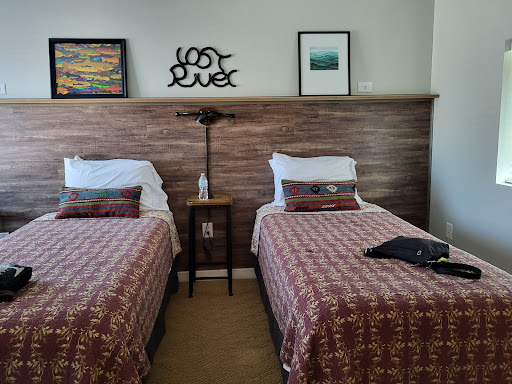 I loved my stay at this gem of a motel. We stayed in the Trout Room with the double bed. The room was pretty small but oh so cozy. This place is clean and quiet. The finished and fixtures are modern and beautiful. The bed was so comfortable and there were plenty of pillows and linens, etc. I wasn't expecting the mini fridge, or the fine books about hiking trails, etc. There was even a convenient outlet equipped with a USB port for phone charging. I would have given 5 stars if the air conditioning unit was not super loud but it was loud enough to wake me up several times...