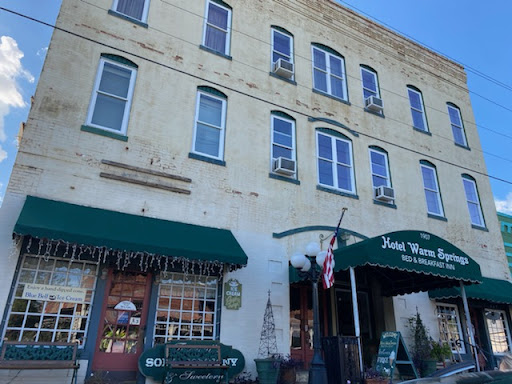 Hotel Warm Springs is one of the first buildings you notice in the small charming town of Warm Springs, GA, probably due to it's size and character that seems to hover over the tiny main street of the town. Originally stopping in town for the day, essentially passing through, my traveling companion and I decided that we were having a great time at the local joint, "Mama's Pub," so we decided that we would seek a place to spend the night. With a desire to be right in the town, we figured we would take a shot and walk in to see if Hotel Warm Springs had any rooms available for that night. I was immediately greeted by a very charming and grand hotel lobby, with an older woman casually helping a couple at the counter. I could just feel that there was a lot of history and character within the four walls that surrounded me; the historic décor and adorable ice cream parlor attached certainly added to this feeling. I waited my turn, as it seemed the woman I spoke of was the only person working, but upon meeting her, I understood quickly that she is very much the heart and soul of the hotel and it's patrons. The woman, named Gerrie, informed me that there were 2 rooms available, one of which was the honeymoon suite; their top tier room if I'm not mistaken. There was also a premium charge for the all inclusive white-table cloth breakfast of which we opted out of due to our impromptu booking; however, it did smell delicious in the morning, but I can not speak any further on it. We ended up booking the honeymoon suite at a very reasonable price, which included a king sized bed and a heart shaped jacuzzi tub equipped with candles and bubbles. The entire booking process was easy going and filled with Gerrie's tidbits of history, very helpful guide to the building/town, and her extremely warming personality. You may have to wait a few extra minutes to get checked in, but it is very much worth the personal touch that Gerrie delivers to each and every guest. The room itself, although old, was very clean and had everything we needed for a comfortable night. I've seen reviews that there was an old mildew type smell, specifically in this room, and I can say that for an 111 year old building, no such smell existed. We utilized the jacuzzi tub and the bed was also very comfortable, although I must admit it seemed stiff upon first impressions. I was also very pleased to wake in the morning to absolutely beautiful natural lighting coming in the windows as it is a corner room; it made the room feel even more inviting. It must be understood that this building is very old, and has been a hotel for much of it's existence (ask Gerrie to tell you the history), and Gerrie has done a great job at maintaining that feel; so do not expect a modern holiday inn feel with freshly painted walls. It's not that, and it does not try to be, which is where most of it's charm lies. As for the rest of the building, the common areas are littered with elegant décor, furniture to relax in, and an adorable gift shop on the first floor. We purchased a couple pieces from Gerrie to remember our time here, and her items are much more reasonably priced than the local gift stores. Before leaving, we also grabbed some fudge from the ice cream parlor attached to the lobby, at which point we learned Gerrie also makes all the fudge herself along with a peach ice cream. So when you're waiting those 5 minutes to get checked in, remember that the sweet woman behind the desk is running the entire show and has been for 31 years, which is a wonderful appeal for the hotel in itself. Overall, this was one of the best experiences I have ever had in a hotel, and certainly one of the most unique; if you happen to visit the charming little town of Warm Springs, GA, do not pass this place by or you'll miss half of the towns charm right off the bat.||||When in town, check out Mama's Pub, Firefly Café, and the Little White...