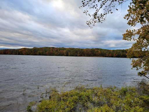 Beautiful Park, but, not dog friendly ! Your segregated from the rest of the campers, and have no access to full hook ups! Not mentioned anywhere in their advertisement ! Pulled in to stay at our reserved site #151, backed in, and realizes we only had electric ! We hadn't planned on not having a water hook up, and after unit ching the travel trailer, didn't want to hook up again, just to fill our tanks for water. We did dump at the last state Park upon leaving so we did have empty black and grey tanks. So... we carried water in jugs back to our camper as needed. They do have access to water spigot throughout the park. The bath houses are outdated, kind of Skevey, so I used my own bath mat to stand on while showering ! The water pressure was nice, plenty of hot water, and they did have 2 big utility sinks for washing dishes at each bath house. The sites are pretty much shaded so our TV antenna only picked up 4 stations, none of which we could zero in on clearly ! No Internet, I have t-mobile for my phone carrier, and have the " one" plan, similar to binge on, as long as you use your phone for viewing the shows your watching. So..my disabled husband spent his time viewing movies on my phone ! I tried mirroring but it would only mirror for about an hour then the phone would shut out the mirror and I'd have to turn it back on, only to have it shut off again in minutes, something I think had to do with the mobile ! So, if your not into the outdoors, bring plenty of movies for your viewing pleasure ! The sites, most of them anyway, have trees between each site, a plus for privacy ! Most are fairly level , and the sites are scattered with large pebbles / rocks, no cement patios. The other thing that bothered me, you can't move the picnic tables, they're bolted down, I had to duck under the arms of my awning to get in and out of my door, bc they also have a cement log, to keep you from backing in to far. Our door was right at the picnic table no matter how far you pulled forward, to keep from blocking traffic with your tow vehicle. Bottom line, would I stay here again, NO !! And...no parking on grass, is a...