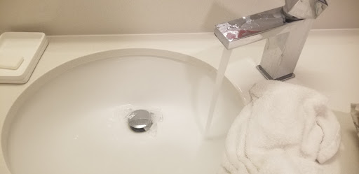The sinks splashes all over the counter due to the location of the faucet. Dirty sock found under bed. Hair tie in the corner of the room. 4 long black hairs in corner next to shower. Trash under the...