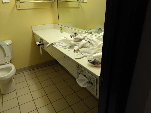 Next complaint I have is on their cleaning. I used to work in housekeeping so I know how it is to clean up after constant slobs, regardless, it was my job and I took pride in it. Well here, it depends on their mood I’m assuming... I had stayed in the same room I had booked the previous night and the bathroom hadn’t been cleaned, just fresh towels and even they had hair intertwined in them. How gross is that? The lamp shades need to be replaced or wiped/dusted. The headboards need to be dusted and wiped as well as behind the actual mattress. Basically the whole room could use a good dusting and vacuuming then a thorough disinfectant. I have been taken the time out of my visits to clean the room so I wouldn’t have an allergy attack. The microwaves could use wiping out as well as the fridges. Maybe they just need slight updating.