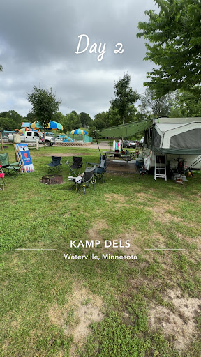 Read moreThis place caught us by surprise- the wife was looking for random spots for camping within a few hours drive and connected with Kamp Dels. No lie, with kids, this place is fabulous! Water park, large playgrounds, places for kids to ride bikes and be semi free to their own little world while having the adventure of camping in our pop up trailer will have a lasting memory on our 2x little 4yo boys minds. the eldest 9yo loved it as well only for the fact that the pool and the ice cream is so close together. There is an abondance of activities that the resort puts together, from arts and crafts, mini putt challenges and local hero visits- which what 4yo boy doesn't like climbing into a fire truck? Mini zoo for the kids to have a close peek at some animals and a natural people zoo with a wide variety of people watching/gawking just walking around from MN proper to different points of the 5 state region that kept the wife busy. We didn't have an extra interaction with the staff- the times that we did, everyone what pleasant/helpful to our inquiries. Common areas were clean/presentable (def had way worse at State/National Parks) - seems like upkeep is on the minds of the senior staff to make/keep us visitors happy which is appreciated especially with the amount of visitors/campers that are/were trampling about- honestly could not think of one time when the restroom near the pool look out of keep- the one nearest the larger basketball court (while there was a concert happening Sat evening) was immaculate. Having the internet was nice for the new generation of little ones while we were breaking between activities! Our camping neighbors appeared to have their first run at camping making good use of the Walmart in Waseca- which is good to know for us on future trips (just in case). Never made it into town as the site was comfortable enough not to venture out- hopefully when we come back with friends/family we can stop in for some grub/brews. We got in early evening Fri - i had a meal all planned out however the feeling of actually cooking slid from my mind when the exhaustion was brought on post unloading/setting up the pop up camper. Luckily, there is a place to eat on site AND the food was rather tasty. Since the wife booked- i found out later that the price range for camping spots is rather comfortable/affordable. Looking forward to coming back as you have a customer as long as we have kids in tow! This camp ground will be a place where we will tell our ten friends. We look forward to securing a clump of spots with our friends and family to have a larger camp experience or be back on the...