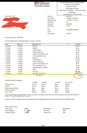 The other pictures (screenshots) are NOT from this specific hotel's Representatives, but an agent from corporate Hilton. I had to contact Hilton corp to check out because apparently the staff lady we spoke with didn't complete the task of checking us out!