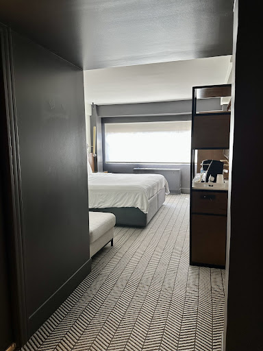 In the room there is a Kuerig style coffee maker and a safe. In our King room, there was a chaise lounge as well. The aesthetic of the room was modern and chic, and there was plenty of space for us to unpack and unwind.