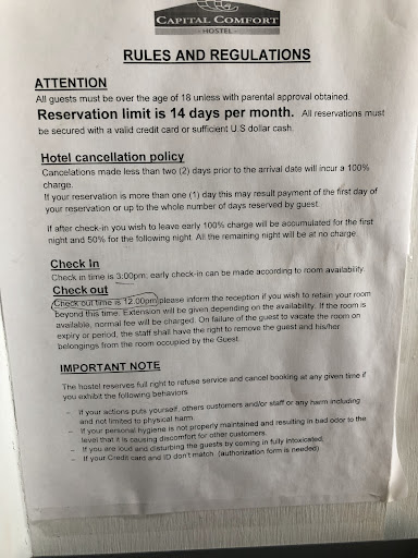 I mean this quite literally, as the owners have obviously sourced some of their mattresses from those tossed out as garbage by other people - details below.||||I chose to stay here because it was a half-mile walk from Union Station, and I was unwilling to pay the $300 that area hotels were looking for. In retrospect, I should have stayed at the official HI (Hostelling International) hostel, which costs about the same.||||I arrived at the front door, pushed the doorbell, but the door wasn't opened and I didn't heard anything. Thinking whoever was running the place was distant from the door, I pounded on it with my palm. Finally someone came out of a side door, complaining of my loudness. I said that if they had a sign with info / instructions on the front door, I wouldn't have felt the need to act as I did.||||A young woman confirmed my reservation and briefly showed me around the place. They give you a very small piece of paper containing the codes for the front door as well as the door of the room you'll be staying in. An older woman - neither of them had English as their first language, told me that if I lost this scrap of paper that I'd have to pay for my bed a second time to get access. There were only two bunks in my room, with a Vietnamese guy in his 40's and a woman in her 60's - which surprised me. However, since I'm 70 perhaps they meant this as a room for adults vs. kids.||||I ran my hand down the mattress on my bed and knew immediately that it would never do, as there was a loose wire just below the surface, and it clearly should have been discarded years ago. My interpretation was that someone else had in fact discarded it, but the hostel felt they could get away with giving it to some unsuspecting person for a while longer. ||||The mattress on the top bunk was a little bit better, although far from good, so I swapped them and used a trick I'd developed in my travels when I have to deal with a poor mattress. I stripped the sheet off it, and put the duvet and my sleeping bag between the mattress and the top sheet. Duvets are too heavy for me to sleep under, so I asked the younger woman for a top sheet and received one. I have no idea how frequently they wash the duvet covers. The springs on the bunks sag quite a bit, and perhaps only half have plywood over them; I moved the plywood from the top to bottom.||||It wasn't a great night, but far better than it would have been with the original mattress. The next day the woman was leaving to go to the official hostel, and I discovered that her bunk had a newer mattress, so I grabbed it and slept much better the next night.||||However, on my last night I could hear and feel someone climb to the bunk above me at about 10:30 PM, and just assumed it was a traveler arriving late. However, this person left at first light (5:30) and I noticed he had slept fully dressed and didn't have any luggage - he actually looked like a street-person, so I don't know what the situation was. I sent a message to the hostel, alerting them to having an intruder, and suggesting it was time to change the codes. They claimed they knew who it was, but wouldn't provide any details on what to me was a very...