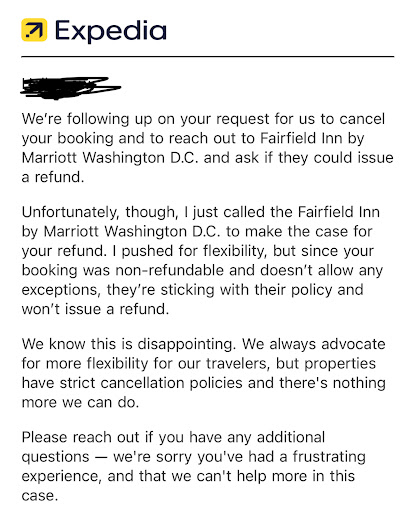 To add on (update on 1/21) -I reserved this hotel through Expedia. Staffs on Expedia were very helpful and tried to reach out to the hotel to negotiate for a one time courtesy for full refund, and the staff even helped me speak to the manager. However, there was still no refund on the hotel end. I’m disappointed by the way the hotel staffs managed the situation. As a tourist on 1/19 in Washington DC, one day before the inauguration, the fact that we paid $197, not only we could not change our date of stay, we were also not allowed to stay in the lobby of the hotel. So we basically payed $197 for nothing. I’m a student and hence I have a budget. I was homeless that night because of this hotel’s unwillingness to accommodate a date change or refund. Ended up spending time waiting in the cold for my transport back to NY.