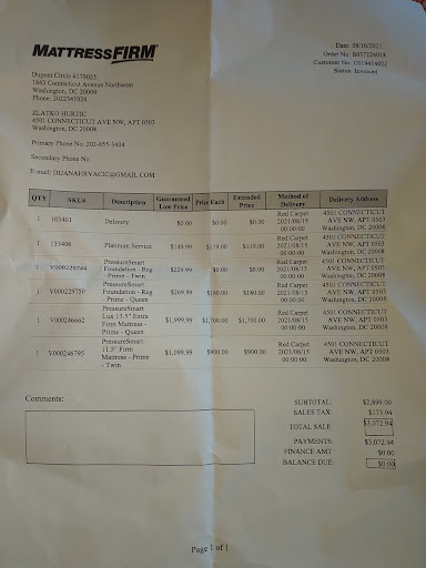 Nine months ago, we bought two mattresses queen and twin and two spring boxes of the same producer Beautyrest (see below attached invoice). Queen mattress was an extra firm mattress as I have serious backbone issues. Very soon one side of the extra firm mattress turned extra soft and sagged down that much that I slide down at night. Since it costed $1700 and it has been several months, we reached out to file a warranty claim. While processing they insisted on photos of both mattress and its foundation (spring box Beautyrest bought in the same shop, check invoice). The warranty claim was rejected due to the " use of inadequate foundation/support system". It does not make any sense considering that both the mattress and the springbox foundation were made by the same producer Beautyrest (check the invoice) and the Beutyrest springbox foundation was recommended by your shop as appropriate for this Beautyrest extra firm mattress. So, there is no place in warranty or warning by your shop that using the frame would eliminate warranty – again both of your items we bought together. The warranty card has forgotten to mention the springbox made by the same producer as the mattress and for its size, and talks about slots (non existent) in this case. If the foundation is really inadequate for this mattress as you suggest then that is the mistake of the producer who made both of them to be used together, and the mattress firm that sells them as adequate for each other and recommends them. It seems that the producer and the shop are finding their own product inadequate. After complaining again, no one has come to inspect the mattress and they just checked different reason on the list of reasons for rejection. I would not recommend to any one to buy anything in this shop as their warranty is fake and products overpriced. the same extra firm mattress-queen size now costs $650 due to bad reviews...