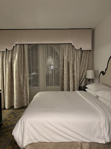 The room was quality, a very expensive space and you can imagine Presidential visits in the past. The bed was beautiful and comfortable, the pillows were top quality as well as the sheets. There was a small office space to the side, and the windows opened onto a quiet street with views of a neighboring embassy or two. The in-room complementary Lavazza Keurig was awesome and very welcome. They refilled the two bottles of water and K-cups for the Keurig every morning, which felt very very nice. There were ample bedside power outlets, super welcome in this age of mobile devices and each plug was quickly populated with chargers. The water pressure was nice, and the included shampoo/conditioner/body wash smelt great and I wished they sold full sized versions in the lobby to take home. The lobby staff at check in was very welcome and professional, felt great to be received so well at arrival.