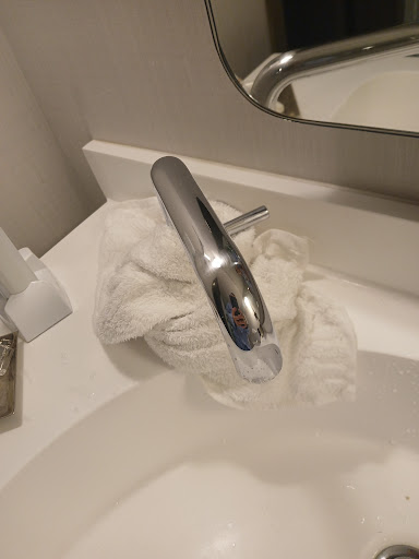 They simply don't care. The point however is what idiot at this hotel would decide to use a faucet like this in their hotel, let alone what idiot would design a faucet like this.