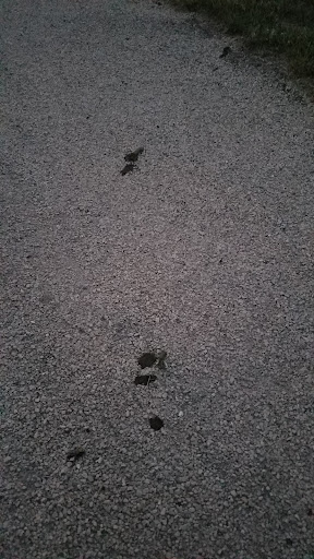 There is a fenced dog park area - divided so that there is a spot where big dogs can play and little dogs can be kept separate - and there are various doggie obstacles like rings and teeter-totters and things to take your dog over/through. At the dog park and at intervals around the walking trail are doggie poop-bags and trash cans.