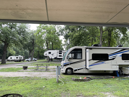 This is a very pretty campground. We stayed two weeknights as we were passing through. The front part of the campground, as you enter, has lots of very large rigs, with no trees or shade. The rigs appear to be seasonal. The back part of the campground which is around the office and the restrooms / pool, is the part that is really pretty. There are lots of mature shade trees and sites have plenty of room. There is a playground, dog park, restrooms / showers and a very nice pool with umbrellas, and some shady places to sit. The laundry room is very nice and clean. There is also a rec hall and a small fishing pond. The office staff were friendly and helpful and a very nice lady took us to our site.