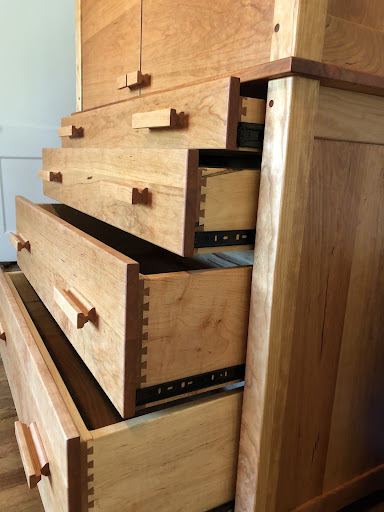 After our lengthy search for an armoire in shops and online came up empty, we decided to see if we could get a custom build. We had some specific ideas about design features, and after communicating by email and phone and meeting with Ben at his woodworking shop, we agreed on a design as well as finishes and details. It was a very smooth, collaborative process - and the results were even better than anticipated! We’re very pleased with our one-of-a-kind armoire (and 2 bedside tables to match). And, we really appreciated the white glove delivery service.