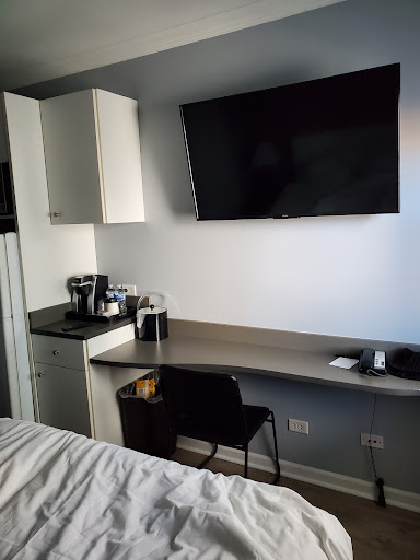 I am so happy I found this charming hotel located by Rush Medical center! First of all I was in a tight crunch to find a pet friendly boutique hotel and check in here with my dog and cat was a breeze! In fact the gentleman who helped me check in had someone else help me with all my belongings so the cab driver would not overcharge me too much. At first I was shown a real small room that I knew might not be a good fit for my huge mountain dog so the front desk manager let me use the handicap room since it was a lot more spacious for my pup. Honestly all the pet friendly rooms will be on the teeny tiny side because only the first floor will allow animals and the upper floors which have larger rooms (slightly) are for people without pets since people have allergies. While you are here take full advantage of the 10 percent discount at the Tavern directly across the street and at Angels which is just around the corner and extremely close. I only regret that no one informed me that I could receive a 10 percent discount at Angels so maybe upon checking in the front desk can mention BOTH dining out options. The location is great because there are so many great eateries, bakeries, grocery stores and pet shop in the West loop and in Greektown all within walking distance of this cute hotel. Another benefit of being here is the staff is young, upbeat, personable and very helpful. On the downside this hotel is not completely savvy with anyone who has pets and who requires extended stays. My room was not cleaned or freshened up daily and that was hard on me because I do suffer from sinus issues and allergies. It would have been great if I could have had the floor sweeped and my bed changed daily but this did not happen. The bed I slept in was comfortable but very a small full sized bed and the pillows way too hard for my liking. Another issue that was hard for me to handle was the fact that right behind my room there is a stairwell and people staying at the hotel were going up and down the stairs and shouting quite a bit so the door would slam really loudly day and night. There is no chair and desk for your computer in the handicap room just a small table that pulls out for you. The decor here is modern and quite comfortable but to me the pillows were a bit hard since i prefer a softer feather pillow. The other problem here is the hotel itself is NOT sound proof at all so you hear people upstairs stomping in their rooms, you hear guests screaming and you hear housekeeping laughing pretty early in the morning. If sounds do not bother you you won't mind a bit. Like I said the location is great and you only have to take a train or a taxi to get downtown in less than fifteen minutes. The hotel is a great value but the rooms are very tiny so you have to compromise. On two separate occasions warm belly cookies were served to the guests and that was truly sweet! This hotel has a charming and happy vibe but very very noisy so you have pros and cons. Another pro though is my room had a window I could open up wide for fresh air so this was perfect for me! Great hotel, great price but honestly noisy and housekeeping needs to improve. If you have pets there is a small pet fee upon check in but if you own a huge dog you will need to take long walks as the rooms...