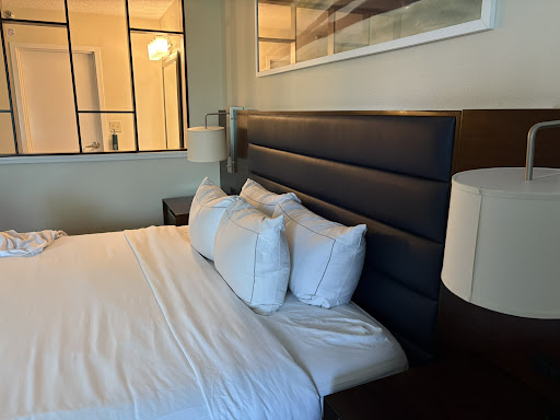 I checked in digitally but stopped by the front desk to pick up a key card, my complimentary water, and of course, the signature cookie. The front desk staff was friendly and efficient—no delays or issues. I appreciated the upgrade for being a Hilton Honors Gold member. They gave me Room 501, a corner room with an L-shaped balcony that wrapped around two sides. It may not be the only balcony in the hotel, but it’s certainly a rare feature and was a welcome surprise.||The room itself has character—and some visible signs of wear and tear. Upon entry, there are multiple light switches, though one didn’t seem to control anything. The foyer leads past a standard closet with an iron, ironing board, safe, and clean shelf space. The bathroom area is split: a sink and towel rack between the bedroom and a door separating the toilet and shower. It’s a shower-only setup with great water pressure, although it uses an on-demand water heater that requires a two-minute wait for hot water—a questionable efficiency trade-off. The toilet flushes with a surprising force, and if the lid is up, it splashes—so keep it closed.||The room is furnished with two queen beds and dimmable lights between them—a nice touch. There are plenty of lamps, a desk with a rolling office chair, a Keurig coffee maker, and a cabinet with a fridge and microwave. Oddly, both Keurig pods and drip coffee filter packs were provided, even though there was only a Keurig unit—an oversight that makes no sense. There’s also a cloth chair in the corner, a side table with an ice bucket, a six-drawer dresser, and a luggage rack.||The balcony was the room’s highlight—spacious, private, and a great bonus. However, maintenance and cleanliness were inconsistent. The air conditioning was nearly nonfunctional on arrival back to the room after a hot day (102°F outside, and almost 80°F inside). I called the front desk and informed them about the heat issue and attempted to bring up other concerns, but the woman cut me off, said she'd send maintenance, and ended the call. No apology. I checked the AC unit myself and found the filters caked in nearly an inch of dust—completely unacceptable. Thankfully, the maintenance tech who arrived was clearly experienced—he brought the correct filters as well as backups for other unit types. Once installed, the AC cooled the room perfectly. He was easily the star of the show and deserves recognition.||But more cleaning issues became apparent: dust on the artwork above the beds, trash under the cushion of the cloth chair, thick dust on the shelves near the sink, and grime on the chandelier and the top of the mirror. Above the bathroom door, there’s evidence of past damage—a large ceiling patch, cracks near the sink, and a broken piece of the marble vanity that had been glued back into place. The sink basin itself is also cracked. One of the wall-mounted lights was crooked with a crushed shade.||Towel quality varied wildly. One bath towel was in such poor condition—frayed and falling apart—I wouldn’t use it on a car, let alone offer it to a guest. One hand towel was new, still had the store sticker on it, but also had a visible stain—possibly blood or makeup—and clearly had never been washed. The other bath towels were acceptable, as were the washcloths.||The room was very quiet due to its location in the far corner of the hotel. I only heard someone in the hallway once during my stay. However, light from the hallway flooded under the door due to a large gap. Thankfully, the closet door could be opened to block most of it at night. The bed was very comfortable—felt almost new—and I slept well.||The onsite restaurant was a pleasant surprise. The bartender was managing the entire front of house by himself and did a great job. I had the fried cod sandwich and crispy Brussels sprouts, both of which were excellent. The sprouts were particularly well-prepared—firm, crispy, and not overcooked.||The hotel offers complimentary coffee near the lobby each morning and has a well-stocked snack shop. Unfortunately, checkout was more hassle than it should have been. I received my invoice via email at 3:40 a.m. on the day of checkout—before I had even left. I used that for my expense report, only to be emailed a revised version later showing a Hilton Honors food and beverage credit instead of the meal I had paid for and expensed. My account is set to collect points, not credits. I tried calling the hotel, but every single extension went to a full voicemail. I ended up calling Hilton corporate, who got someone on the line after about 10 minutes. She was friendly and fixed the issue.||I attempted to mention some of the room’s issues to staff in person and over the phone, but they showed little interest and offered no follow-up....