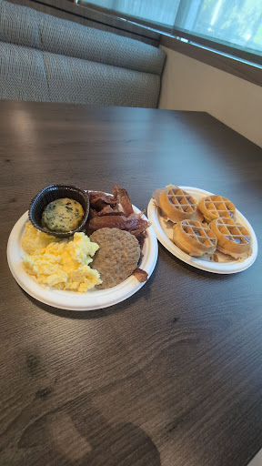 The daily breakfast was convenient and more like what you got in hotels prior to the pandemic, so I was glad to see that since some hotels drastically limited or did away with their breakfast offerings entirely. Some items it featured were waffles, scrambled eggs, sausage, a couple of dry cereal options, milk, yogurt, fresh fruit, hard boiled eggs, water, juice and coffee.