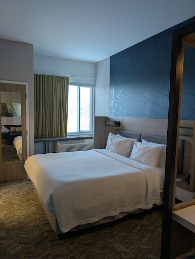 NO SLEEP! NO AC! Stay Away!||We were here for one night and paid $200 for this dreadful 2-star property. It looks like nice enough on the surface, but that superficial veneer is soon shattered. || The bed was a saggy back-breaking torture device. Your spine will not soon recover from your stay. The AC worked well enough until we tried to turn it off. Maintenance could not get the thermostat to work either; she yanked the entire cover off of the AC unit and disconnected something inside. She said it might be the thermostat battery. So why not simply replace it??? By 2am it was so hot in our room on the fourth floor, I tried to turn on just the fan, but the entire system had been disabled. Tried to open the window, but only opens 2 INCHES! It was suffocatingly stuffy and hot in the room. || At 4 oāclock in the morning some awful rumbling started; the windows were actually vibrating. I got up and looked out the window. Apparently, they are next door to a massive big rig trucking hub. At 4am they turn on the engine of every single truck there and just let them idle for hours until theyāre neededāthat night there were 14 deafening diesel monsters. It was so bad I left my husband in the bed and crawled over to the sofa. A truly, truly horrible experience. || What made matters even worse was when I spoke with Terry Stewart on the phone, the propertyās sales manager, after we had returned home. He was defensive, pissy and utterly unhelpful. I realize they have no control over their neighbors, however, all we asked for was a QUIET roomā that was our ONLY request. They couldāve put us on the other side of the hotel away from the entire fleet of NOISY diesel big rigs. His response to the problem with the AC was to get very hostile and aggressively demand āYou told them to turn it off!!!!! Right, right? DIDNāT YOU!!!!!!??????ā No, I didnāt. I asked them to FIX it so we had control over the room temperature for the duration of our night. This location is absolute rubbish. Management is hostile and rude if you have an issue. Stay away. If you require Springhill Suites, thereās another one less than 10 minutes away thatās more highly rated and...