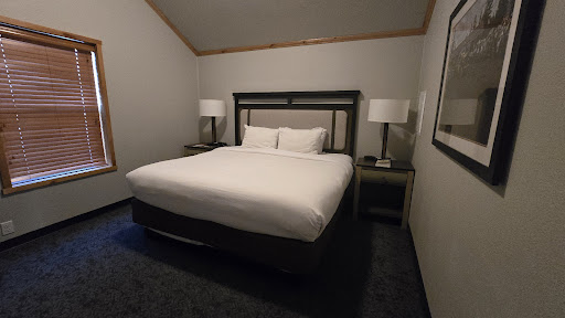 Read moreThis cabin was absolutely perfect. We were a party of 6, 4 adults, 2 children. We got the two bedroom, one per couple and the girls slept on the pullout in the living room. It was a nice size cabin overall, the rooms were fairly roomy, not compacted at all. The living room and kitchen of course were a bit small once the bed was pulled out due to the wood carved end table, that was really nice. But that's understandable as it is all in the same room. The cabin came equipped with an electric stove, dishes, pans, soap to wash dishes or pods for the dishwasher, a fridge, 4 coffee mugs, paper towels, toilet paper, and an abundance of fresh towels and large fire place. Cabins also come with a porch area and two seats along with a little table. Very nice touch. Their were to access doors so convineint if you parked in the back or towards the front. Linen was all clean, beds super comfy. They forgot to leave the linen for the sofa bed but brought it out within 15-30 mins of the call. The kids were each left a smore kit and fire pits were within a reasonable distance (each a cabin down, one to the left and one to the right). Security circled throughout our evening. The cabins are literally not even 5 mins outside the west entrance. The town has everything easily within a 10-15 mile radius. I would definitely stay here again, loved everything about it. And as for price, well all of the up to date (including some of the more outdated places) are within the same price range so I say worth...
