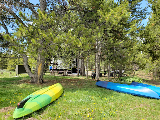 Read moreThis is not the place for campers who are irritated by large RV's running generators, but it's a great spot on Hebgen Lake with its own boat launch and dock. We noticed some spaces have electric hookup, too. We were very lucky to reserve a tent campsite online last week, a spacious, grassy site with nice trees. Although not right on the lake, it was in full view and an easy walk to launch our kayaks. The bathrooms were well maintained by a camp host, who was very personable. The town of West Yellowstone was barely a 10 min drive away and has stores and restaurants. The RV campers who were running generators were considerate about being quiet after 10pm. Some RV campers left poor dogs unattended inside the campers that barked annoyingly for hours, but that's just how it goes with some dog owners. All in all, a nice spot and a fun time. The lake is absolutely gorgeous and the bird and animal watching...