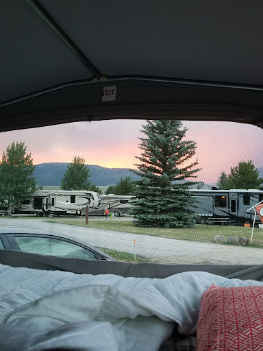 Not being able to find a place near Yellowstone we thought this CG would be better then nothing. I was very, very wrong. Even though they lied to us about staying three nights the first couple that checked us in were very nice and helpful. It quickly went downhill from there. The minuscule lot they put a 40' 5th wheel in was a bad joke. 4' of grass next to us with the neighbors utilities and our picnic table there. Tired from a long day went to bed early but was kept awake by the neighbors party UNDER, not just next to the bedroom slide out. To get the third night we had to move to another site and were promised three times that someone would be there FIRST THING in the morning to guide us to the other "Super" site. Walking the dog the next morning saw the people in the new site were leaving. Waited an hour and no one from the office showed. Not wanting to waste our limited time in Yellowstone went ahead and moved the 5er myself. Just as I am getting it level the guy that was supposed to help me move it comes sliding to a stop on his four wheeler, jumps off and with a real attitude tells me I was supposed to wait for him. He does not like the way I have it lined up and has me go back and forth a few times and tells me now the slide outs will fit (duh) and then roars off on the four wheeler. The hitch of the 5er is sitting at the edge of the drive and the pickup is all the way across the drive sitting down hill on an angle from the site. After unhooking I have 3' to maneuver between the 5er and the truck across the drive. After much going forward and backward am able to get the truck off the drive, but now there is no where to park it since he put the end of the 5er at the edge of the drive. Went on about our day and when we got back pulled the truck around the end of the 5er thinking that maybe it would fit in the gravel side lot. It did not. Ran over the end of a 4 x 4 holding the gravel back and broke off about 6 inches of one corner. Having the call of nature went in to handle that and the next thing I know hear BAM, BAM, BAM, BAM, BAM, BAM on the door. Open it up and the man standing there goes into a tirade with quite an attitude. He is the owner and why didn't I park in back and blaw, blaw, blaw. The owner is talking to a paying customer this way? OK, enough is enough. I got in his face and let him and the rest of the park know what I thought of his lying employees, thridiculouslyly small site he had me in at first, the mover that did not show up and when he did leaving me with 3' of space to get my truck out with and I hated his F ing park. Apparently no one had ever talked to him like this before, ha asked me to move my truck to the back of the site and I told him never mind I am leaving and went inside to start packing. Before I could get hooked up he came back and started in again first on me and then yelling at my girlfriend, something about how I talked to him. I told him to not talk to her that way, shut up and let me leave. Well hooking up was absurd!! Luckily the truck across the drive was not there and I had room to get lined up, however my pickup was angled downhill and to the right of the 5er. The owner did not offer to help get it hooked up but sit on his 4 wheeler glaring at me and yelling NO NO NO not that way. After mumaneuveringing I finally managed to get it hooked up, I thought. Pulled forward to check the connection and the 5er fell off the hitch onto the tailgate bending it in a big V. Managed to get it hooked up for real the next time and the OWNER escorted us off his property. If you have a fifth wheeler stay away from this place, I am speculating that it started out as a fishing camp ground for the nearby lake and was designed for much smaller RVs.