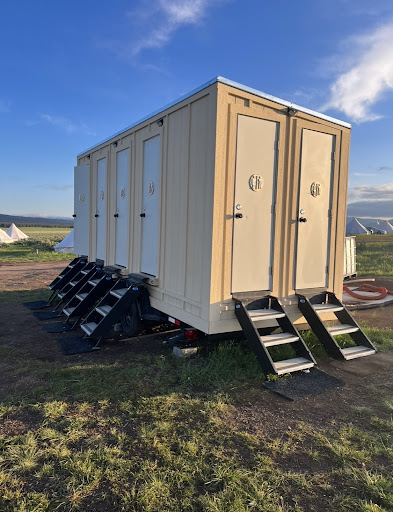 There were two restroom trailers on either side of the road with the tents. Four showers in each one and three toilet only. They were not the cleanest, and the water was always weird. They left the windows open at the top so they were full of bugs as well. The biggest issue being that every time we wanted to use them, they were full because there were not enough stalls for the amount of tents and people staying on site. They left us small lanterns outside of our tent, but none of them were fully charged so we had to use our cell phones which burned our battery since we didnât have electricity.