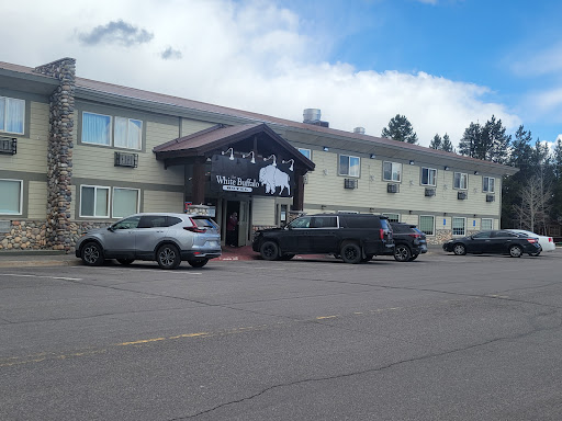 Read moreCheck-in was quick. Cool white Buffalo in the lobby. Rooms all open up to the outside courtyard which has a fun bubble art piece with beautiful flowers. Guys were smoking in the courtyard upon arrival. Doors did not have a high lock like other hotels to keep our two year old from opening the door from the inside and getting out. That was an added stress the two days we were there. First impression of the room was that it had extra space compared to other hotel rooms...and surprised about no fridge (I had called a few days earlier to see if there was a microwave and/or fridge in our room for meal planning purposes and they said there would be). My kids also laughed when they saw the iron burn on the floor next to the bed. The toilet clogged within 5 minutes of arriving after one child used it, so we called down to see if they had a plunger. We were told they would bring us one, so we waited for about 20 minutes and decided to go to the front desk and get it ourself. Front desk was friendly. Beds are not very comfortable, very firm. Air conditioning is a wall unit in each room. TV has Dish channels but not internet access to Netflix, Disney plus, etc. Channel selections were good! We appreciated the cheaper price compared to other places and were willing to accept the limit of two free breakfast buffets a day. Breakfast for additional people is 5.00 each if over 5 years old, so we had to pay 15.00 each morning for our family to get breakfast there. There is a guest laundry room and an ice machine. I liked the sink/vanity outside the toilet/shower room. If you get the double queen and sofa room, the sofa is two cushions so will not fit an adult sleeper. It will fit our 5 yr old great, though! Seems clean and although very old, I think the owners try to keep things up to date. Room had a iron/board and a hair dryer. Breakfast was a buffet served by staff which was great compared to other hotels where you have to take the time to make waffles for everyone in the company. When we showered, the water was cold for my husband poor guy, and cold for me for the first 2 minutes. Started warming up after the water had been on for 6 minutes. I can see why others have complained about no hot water, maybe it just takes a while to get to the room? Husband had connection problems to the hotel internet. Overall not bad, and excellent location right across from the town playground/park, but didn’t think it was worth the price. Kids have asked to go there again which I wouldn’t mind but we will probably try...