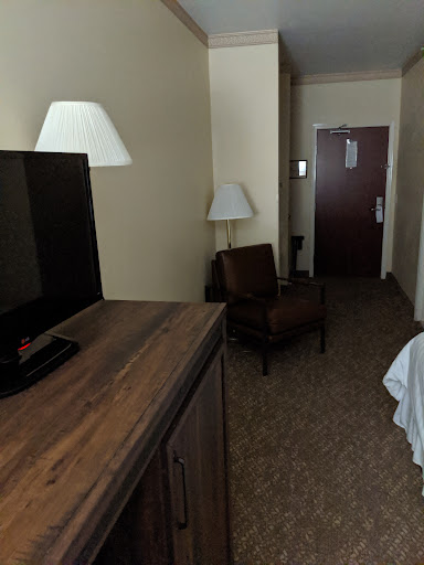 Read moreWe chose this place after our initial stay at another local hotel did not pan out due to room locations. We found this hotel had a large 2-room suite, which allowed us to be together, yet have space. Although it is a 2-room suite there is only one bathroom, plus a sink area near the entry door. The place was very clean, yet it could not hide that it is old. The bathroom was in great need of updating, having several broken floor tiles and worn areas in the tub that look like they had been scrubbed clean down to the metal of the tub. It did appear to have had new carpeting installed but the beds and the room in general showed its age. The beds were fine, not great, but not horrible either. The hotel staff was not friendly, ever. Each time there was a new person at the desk, or even someone we had already greeted, they did not acknowledge or greet us until we greeted them first. The maid staff however was kind, helpful and very friendly. The room was not particularly noisy, but there seemed to be little to no insulation between us and the room above ours. We came to believe that the guests above us were a family of elephants. They stomped as they walked back and forth in their room, being so loud that it woke us up every morning we were there, as early as 6:30am, and making stomping noises as late a 11:00pm. At times it felt like our walls were shaking with their hard pounding. So if you absolutely need to stay here, try to get the top floor. The breakfast, which I had read was "great", was just coffee, juice, muffins and cereal. We saw nothing offered that was freshly cooked like eggs or grits. While we were there, there was still snow on the ground, so you definitely want to start your day with something more than coffee and a muffin. Luckily there are wonderful breakfast...